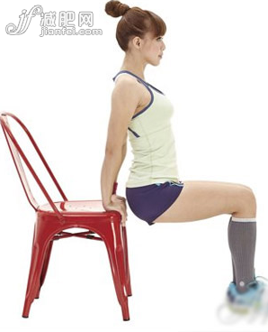 臀部往前移動,以核心肌群撐住身體,讓身體與大腿、大腿與小腿皆呈現(xiàn)90度。