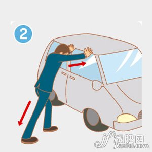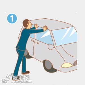 ①腳張開(kāi)與肩齊寬的幅度,站在離車門(mén)手臂長(zhǎng)的距離,兩手向前伸。右腳往后退一步,膝蓋伸直,腳后跟緊貼地面。前方的左膝蓋稍稍彎曲。