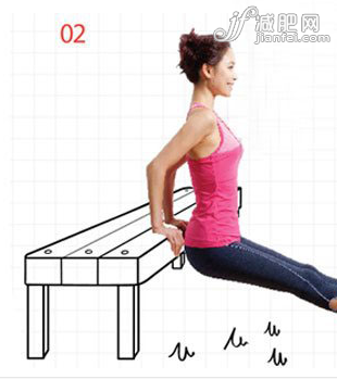 01、用臀部側(cè)面鼓起部位的底部貼住長(zhǎng)椅邊。手抓住另一側(cè)長(zhǎng)椅邊??拷L(zhǎng)椅一側(cè)的腿腳腕扳開(kāi),稍稍斜向上提。另一側(cè)腿伸直,使腳腕和屁股在一條直線上,然后腳貼地。另一只手放到盆骨處,完成第一個(gè)姿勢(shì)。