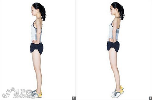 (2)膝蓋伸直,抬起腳后跟,再放下,重復(fù)動(dòng)作。注意不要把重心放在小腳趾的方向。