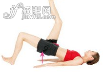 1.屈膝,仰面躺著,腳尖往上提。接著,腹部用力,注意力集中在大腿根上,有意識(shí)地抬高臀部。注意,在臀部往上提的時(shí)候,腳尖要保持向上。