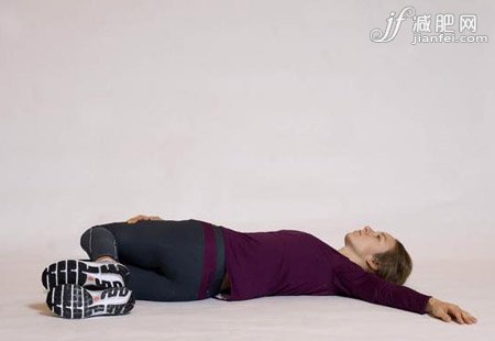身體仰臥于地面,雙膝彎曲,雙足平放于地面上。將雙膝向右側(cè)放下,同時(shí)身體上部不能隨之右轉(zhuǎn)。左臂向身體左側(cè)外展并置于地面,右手交叉置于左側(cè)大腿之上,緩慢地向體側(cè)扭轉(zhuǎn)壓體直至背下部及體側(cè)有拉脹感產(chǎn)生。身體兩側(cè)交換,重復(fù)上述動(dòng)作。