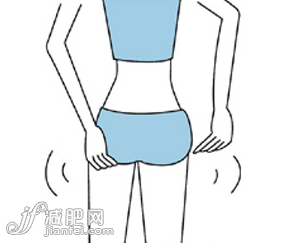 雙手手掌稍稍彎曲,中間部分微微隆起,一邊左右擺動(dòng)腰部,一邊用雙手手掌敲打大腿根到臀部的部位,左右交互敲打10次,有節(jié)奏地進(jìn)行敲打。