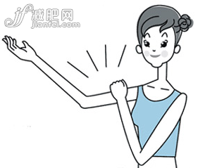 左手抓住右手手臂,用手指捏手臂上的贅肉。一只手做3~5次,換一只手動(dòng)作不變。