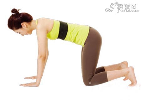 1. 手掌與膝蓋著地,腳指踮起,趴跪于地面。