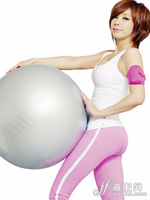 雙腿分開,做劈叉姿勢,雙臂伸直,雙手從胸前抱住健身球,向上舉,深呼吸,身體重心盡量往后傾,保持姿勢幾秒鐘。能很好地減去腰腹、腿部、手臂部位多余的贅肉。