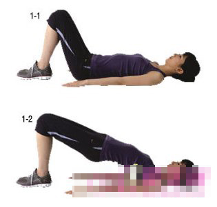 1-2、慢慢地將臀部抬離地面,使得大腿-臀部至肩膀成一直線。