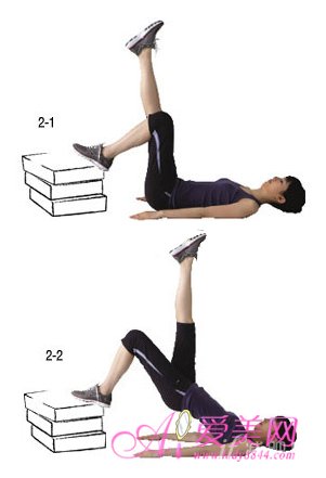 2-2、然后將臀部向上抬起,使得大腿至肩部成一直線。停留數(shù)秒后慢慢放下,接著換腿重復(fù)動作。
