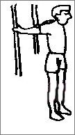 面對門框的一側(cè)或直立的柱子,將雙手置于門框或柱子上,約與肩同高,略拱背聳肩,使得上背部分的肌肉有拉開的感覺。保持此姿勢20秒不動。
