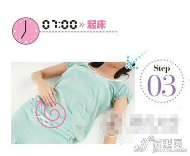 3)從肚臍下方約四指距離的丹田開始,順時針畫圈按摩,幫助內(nèi)臟蘇醒,同時可以改善便秘。