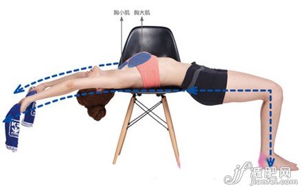 豐胸動作2、吐氣后拉:慢慢吐氣,雙手往后高舉過頭,與身體形成一水平線,手臂完全伸直,此時可以感覺胸部、腹部自然延展,吸氣維持10秒。Check:有人會因為放松,手肘彎曲,這是錯誤的。手肘要保持伸直,作用力才能延展到副乳位置。