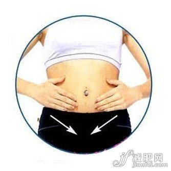 2、使用雙手指腹,以肚臍為中心,順時(shí)鐘方向畫(huà)圓在腹部進(jìn)行按摩。