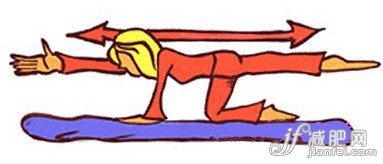 STEP 3-2、然后右臂向前平舉的同時,左腿向后伸直抬起,使得上下身前后拉直。保持10秒后放下恢復之前的姿勢,然后換成左臂右腿前后抬起。
