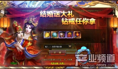 未婚狀態(tài)下打開求婚界面,可向其他未婚且達到56級的玩家求婚。求婚成功后雙方獲得婚戒,獲得結婚獎勵。同服玩家會接收到祝福界面,點擊祝福按鈕,即可向結婚二人索要禮金紅包。