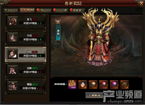 各位三國(guó)大佬所占據(jù)的是會(huì)員BOSS也是兇險(xiǎn)萬(wàn)分!孫權(quán)、劉備、曹操三足鼎立,更有張飛關(guān)羽從旁助陣,只要達(dá)到指定VIP等級(jí)即可挑戰(zhàn),每天一次,充值元寶即可提升VIP等級(jí),只要你夠?qū)嵙Γ涂梢詫⒊妊b、升星石輕松帶回家!