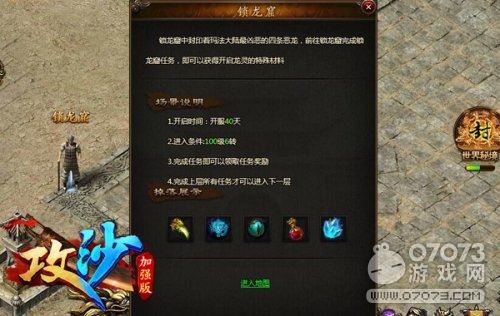 相傳只要集齊毒龍之牙、龍皇之魂、魔龍之眼、火龍之血四大法寶,就能召喚神龍降臨瑪法大陸,獲得來(lái)自遠(yuǎn)古的異界能量。而這些法寶就藏在瑪法大陸神秘的“封魔帝都”,其中兇險(xiǎn)異常只有達(dá)到6轉(zhuǎn)100級(jí)方有資格進(jìn)入,并且活著走出來(lái)!
