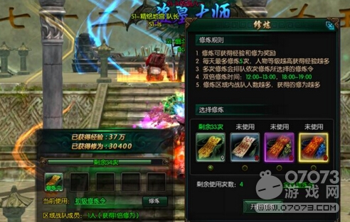 玩家需要去倒斗古城廣場(chǎng)高臺(tái)上面,選擇一種修煉令進(jìn)行修煉,一個(gè)修煉令能修煉50次,每5秒回修煉一次。每日最多使用5張修煉令,修煉能得到大量的經(jīng)驗(yàn)值,使用不同的修煉令,經(jīng)驗(yàn)值不同;除此外,在一起修煉的戰(zhàn)隊(duì)成員越多,得到的修為值越高。每日雙倍修煉期間,收益翻倍。