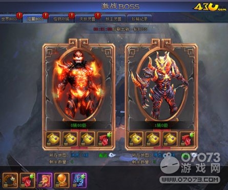 43u《鴻蒙天尊》狂暴BOSS獎(jiǎng)勵(lì)可是相當(dāng)?shù)呢S富,3-12階進(jìn)階線裝備、紅礦石、銅錢卡、人物經(jīng)驗(yàn)丹、須彌神譜殘卷全都有??癖〣OSS會(huì)在每天的9:30、12:30、14:30、22:30刷新,小伙伴們可要鎖定時(shí)間哦!
