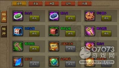 2. 物品形態(tài)中共分五大類物品,分別為:道具、裝備、神器、寶物、戰(zhàn)魂。