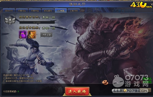 每天的16:00-16:3043u《鴻蒙天尊》會開啟3v3爭霸活動,,在3v3爭霸活動中玩家可以隨意區(qū)攻擊別人但是也要小心躲避其他玩家的攻擊哦!在場景中,每10秒就可獲得固定積分,成功采集神劍且持有神劍的玩家可獲得更多積分哦!