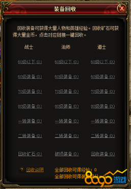 游戲中做任務(wù)、刷副本等等都可以獲得裝備獎(jiǎng)勵(lì)的,但并不是每一件裝備都是自己可以使用的,一直放著也是浪費(fèi)有限的背包空間,扔了又實(shí)在可惜,現(xiàn)在不用糾結(jié)了,來(lái)試試裝備回收吧,可以獲得大量人物和英雄經(jīng)驗(yàn)、以及裝備積分。