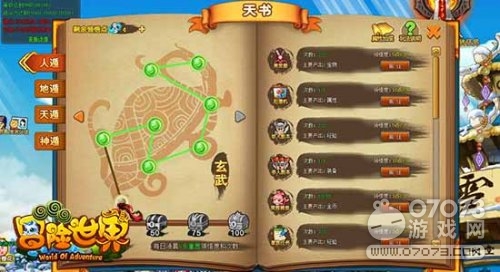 騰訊平臺(tái)《冒險(xiǎn)世界ol》天書系統(tǒng)是一個(gè)集日?;钴S任務(wù)與人物屬性成長為一體的養(yǎng)成玩法。天書共分為人遁、地遁、天遁、神遁四種層次,人遁為最低層次天書,人遁中的所有陣點(diǎn)全部激活后才可激活下一層次天書。