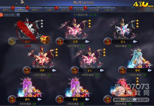 兇險的43u《鴻蒙天尊》世界BOSS會在每天的10:00、15:30、17:00、22:00刷新,刷新的BOSS等級不一,小伙伴們可根據(jù)自己的等級去挑戰(zhàn)哈!雖然挑戰(zhàn)必自己等級低的BOSS成功率比較高,但是小編想說的是:越高轉(zhuǎn)數(shù)的世界BOSS,獎勵越豐厚哦!