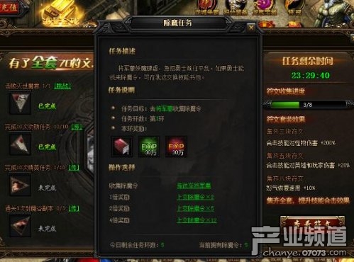 技能書包和30萬經(jīng)驗值,加上30萬的英雄經(jīng)驗值,這是一環(huán)的獎勵。同樣是一環(huán)的任務(wù),傲天藍(lán)月傳奇小伙伴有的可以最高可以領(lǐng)到四倍,有的人卻只能領(lǐng)到一倍,到底是什么原因呢?仔細(xì)說來,這個跟勤奮的程度有關(guān)系。如果堅持不懈地收集除魔令,每一環(huán)任務(wù)可以通過12個除魔令來獲得四倍獎勵,無論是個人經(jīng)驗值還是英雄經(jīng)驗值都可以高達(dá)120萬。
