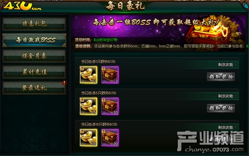 大家都知道激戰(zhàn)BOSS會獲得海量裝備,卻不知道還可以獲得元寶和進(jìn)階丹吧!在每日豪禮活動期間,參與擊殺野外BOSS、古墓BOSS、BOSS之家,即可獲得豐厚獎勵。每當(dāng)?shù)燃壧嵘龝r也可獲得大量的元寶、銀幣和進(jìn)階丹,而且在線時間的長短直接決定了玩家能夠獲得多少元寶!
