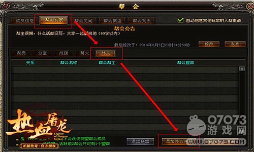 在蘿卜玩《熱血屠龍》幫會(huì)界面,幫主通過幫會(huì)發(fā)展中的“添加外交關(guān)系”即可選擇希望結(jié)盟的幫會(huì)并發(fā)送同盟邀請。達(dá)成同盟后,聯(lián)盟幫會(huì)便可以共享完成BOSS、精英討伐任務(wù)。一人擊殺,該地圖內(nèi)的所有同幫及聯(lián)盟幫會(huì)成員均可完成對應(yīng)的討伐任務(wù)。同時(shí)還將有專門的聯(lián)盟聊天頻道,聯(lián)盟幫會(huì)成員可在新增的“聯(lián)盟”聊天頻道中進(jìn)行交流,增進(jìn)彼此感情,令日后的打?qū)殹K無往不利。另外,同盟幫的幫會(huì)新增的盟幫攻擊模式,在戰(zhàn)斗時(shí)還能夠避免搶BOSS、攻城時(shí)誤傷盟友。如此之多的優(yōu)勢,絕對能令諾瑪大陸的闖蕩之旅更加輕松自如、運(yùn)籌帷幄!