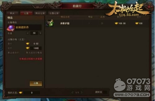 若想把背包里多余的材料賣出,可點擊出售頁簽,選擇出售物品,設(shè)定數(shù)量,再調(diào)整出售價格即可把物品掛在拍賣行上,只要51《太極崛起》的玩家對你的物品感興趣并且購買了,你就能獲得元寶,但要注意,交易成功的話將會扣除35%手續(xù)費(fèi)哦。