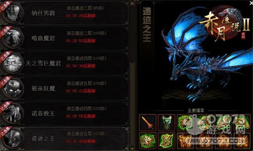 6399yx《赤月傳說2》諾亞遺跡一層有50級的梼杌巨獸、60級的混世魔王、70級的樓蘭巨魔王、80級的死亡蟻后以及80級的美杜莎。據(jù)悉,諾亞遺跡二層有80級的熊貓掌門、90級的摘星教主、95級的納什男爵、100級的嗜血魔君。