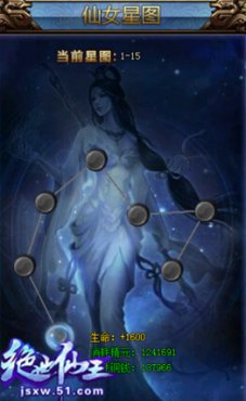 階數(shù)越高每次進(jìn)階消耗的玫瑰花越多。點擊星圖按鈕可將升階界面切換至星圖界面,可對仙女進(jìn)行升星操作。仙女升星需消耗精元和銅錢,每顆小球都有點亮概率,每點亮一顆小球,角色便獲得相應(yīng)的屬性加成。點亮當(dāng)前星圖最后一顆小球后,界面跳轉(zhuǎn)到下一層星圖,高等級的星圖點亮的概率會更低。
