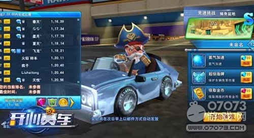 進入競速挑戰(zhàn)模式后,系統(tǒng)會根據(jù)當前的地圖與模式自動為玩家選擇最佳出賽車輛,在該界面中玩家可以查看當前全服的挑戰(zhàn)速度排名。在競速挑戰(zhàn)游戲的準備階段,玩家可以花費金幣與紫鉆購買氮氣加速、超級盾牌、吸取金幣三種輔助道具。