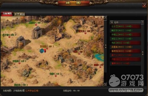 先來看看傲天我是皇游戲里當前的地圖,屬于沙場的二層。在不大的地圖內(nèi)有著100級到130級的十個boss,其中100級的五個、120級的兩個、130級的三個。從安全的角度講,可以先挑戰(zhàn)100級的。如果你覺得還比較輕松,那可以繼續(xù)挑戰(zhàn)120級的百里奚,后面130級的晉文公、馮亭、廉頗。