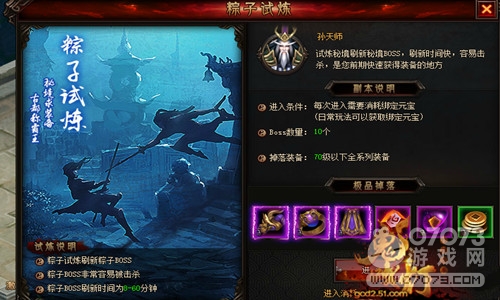 想要簡單快捷的獲得眾多裝備和銅錢,快來《鬼吹燈》粽子試煉副本吧!進(jìn)入粽子試煉是需要消耗綁定元寶的,粽子BOSS刷新時間為8-60分鐘。在粽子副本中一共設(shè)有十個粽子BOSS,小伙伴們不要被數(shù)量嚇到,粽子BOSS還是非常容易被擊殺的,擊殺粽子BOSS將會獲得70級以下的全系列裝備哦!