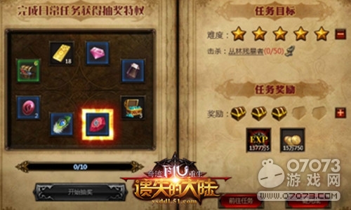 讓抽獎來的更猛些吧!完成每天的十環(huán)任務(wù)之后,還能參與幾輪抽獎活動。而抽獎所獎勵的道具都是游戲的極品道具,無論是強(qiáng)化裝備用的寶石,還是提升神器坐騎的消耗品,甚至是極品卓越裝備,也能夠通過日常任務(wù)抽獎獲得。