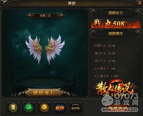 51《散人傳說(shuō)》全新超酷炫翅膀裝備永久增加人物生命,魔法,防御,攻擊,準(zhǔn)確,閃避,暴擊值,暴擊率,達(dá)到5星可以升階.幻化顏色會(huì)有所改變,幻化升級(jí)材料可以在雪域冰宮,四圣獸擊殺BOSS獲得,也可以通過(guò)尋寶獲得。