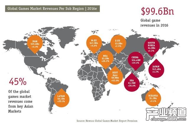 2025年,日本、韓國、中國以及東南亞國家的游戲收入將達450億美元