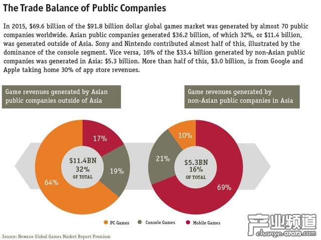 在2025年,全球游戲市場共計創(chuàng)造了918億美元收入,其中大約70家發(fā)行公司就創(chuàng)造了696億美元收入。亞洲發(fā)行公司創(chuàng)造的收入為362億美元,占比 32%,其中有114億美元的收入來自于亞洲以外的地區(qū)。索尼與任天堂所創(chuàng)造的收入在所有亞洲發(fā)行公司收入中占比接近一半,它們在主機市場的統(tǒng)治地位也足以證明這一點。反過來,在非亞洲發(fā)行公司創(chuàng)造的334億美元收入中,來自亞洲地區(qū)的收入占到了16%,也就是53億美元。在這53億美元有,超過一半以上 ——也就是大約30億美元,來自于谷歌與蘋果從應(yīng)用商店收入中獲得的提成,提成比例為應(yīng)用總收入的30%。
