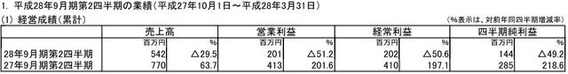 FALCOM半年財(cái)報(bào):銷售額為5.42億日元