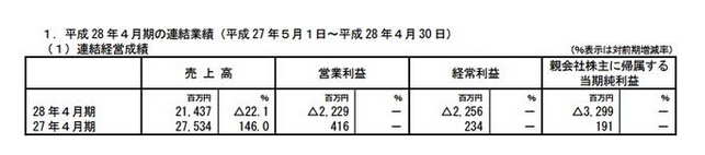 營業(yè)損益為22.29億日元的赤字(前期為4.16億日元的黑字),經(jīng)常損益為22.56億日元的赤字(前期為2.34億日元的黑字),當(dāng)期純利潤32.99億日元的赤字(前期為1.91億日元的黑字),整體成大幅減收減益趨勢,黑字轉(zhuǎn)赤字。