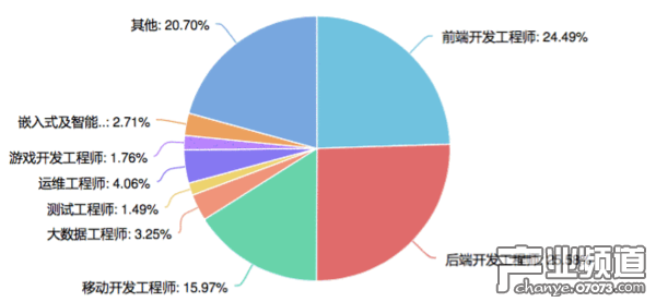 極客學(xué)院對平臺內(nèi)300萬程序員用戶發(fā)放了調(diào)查問卷,回收統(tǒng)計發(fā)現(xiàn),前端,后端,和移動開發(fā)工程師是占比最多的。也就是是說如果掉下一塊磚砸到程序員,他十有八九是后端或者前端,最不可能的是測試工程師。