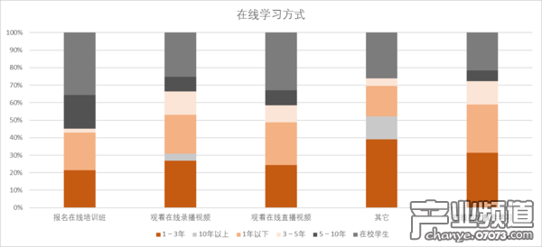 入行5-10的工程師最喜歡線上的培訓(xùn)課程,不差錢、有效果的學(xué)習(xí)方式。不分工作年限,超過60%的程序員們最愛在線錄播視頻,而各大教育機構(gòu)推出的直播視頻看來還需要培養(yǎng)用戶習(xí)慣。極客學(xué)院的布道師發(fā)現(xiàn):相對來講在校學(xué)生更喜歡這種方式,需要強輔導(dǎo)的程序員小鮮肉也比較喜歡參與直播。更加深度的圖文內(nèi)容也得到了職場新人的歡迎。