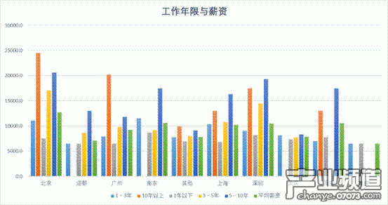 在工作年限上,1-3年和3-5年的工程師平均薪酬相差不多,而5年以后的工程師薪酬有了明顯的上升,這說明資深工程師在市場上更加搶手。