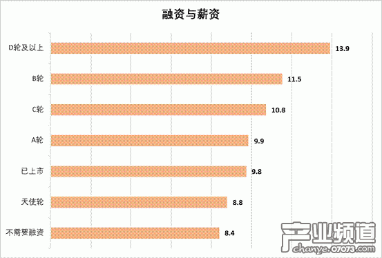融資到哪輪的公司,給工程師的薪資最高?D輪以絕對優(yōu)勢勝出,比較好理解在于一般融資到D輪的公司已經(jīng)成為行業(yè)翹楚,高速發(fā)展。但是融資到B輪的公司給到的薪酬也很高,這可能反映出國內(nèi)創(chuàng)業(yè)公司的特點:終于拿到B輪了,逃過了A輪死,慶幸之余又有錢任性。