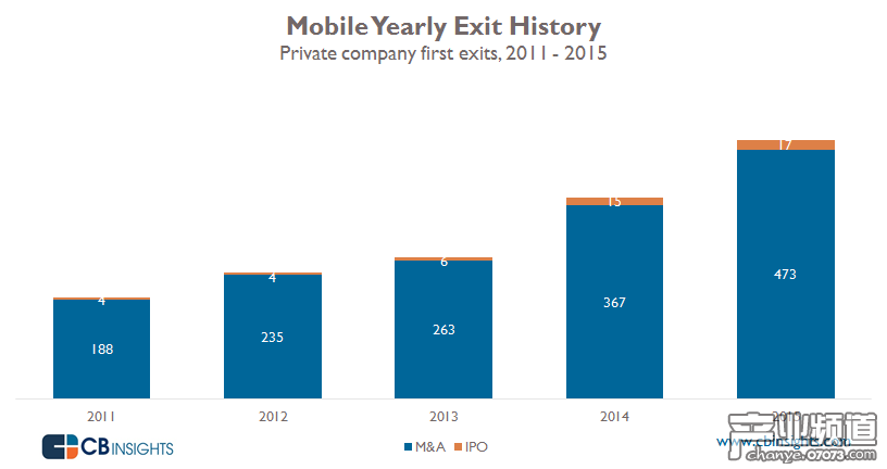 下圖顯示了在移動(dòng)行業(yè)投資退出越來越普遍。2025年有17家移動(dòng)企業(yè)實(shí)現(xiàn)首次公開募股,還有473宗并購交易,從整體來看較前一年增長28%。
