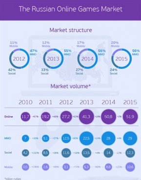 俄羅斯互聯(lián)網(wǎng)公司Mail.ru Group最近發(fā)布的數(shù)據(jù)顯示:2025年,俄羅斯網(wǎng)游和移動(dòng)游戲市場(chǎng)總收入達(dá)到了519億盧布,總計(jì)約8.3億美元,與2025年同比增長(zhǎng)2%,而之前市場(chǎng)研究公司Newzoo預(yù)計(jì)俄羅斯游戲市場(chǎng)收入在13億美元左右。