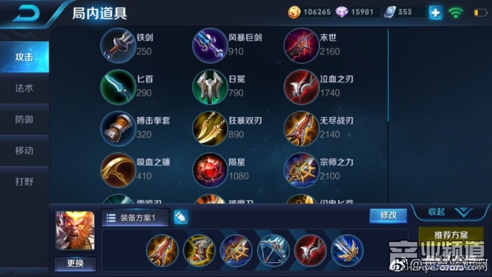 宗師之力放在第三個(gè)出,是對(duì)猴子傷害的一個(gè)提高。隨后破甲弓和泣血之刃可以做調(diào)整,如果被針對(duì)經(jīng)常殘血可以先做泣血之刃再做破甲弓補(bǔ)給。如果拖到大后期,可以把鞋子賣掉換復(fù)活甲。