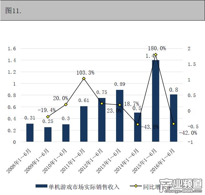1.5.4中國單機游戲市場實際銷售收入及增長率
